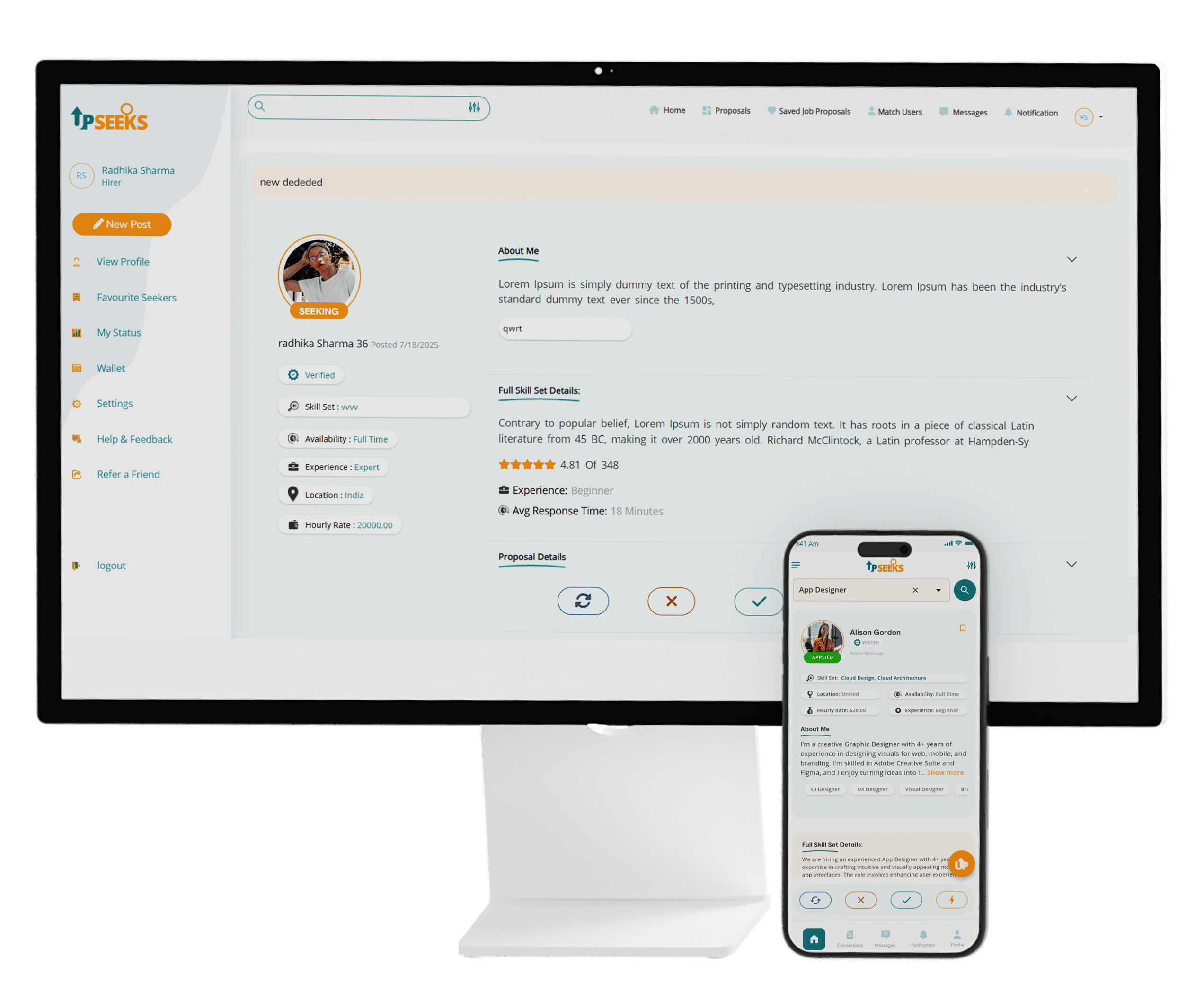 Once users have created their profile, they may begin seeking/providing work. Upseeks utilizes its powerful algorithm to connect the perfect candidate with the advertised job role. If the connection between the job seeker and provider is mutual, a discussion regarding the opportunity begins.