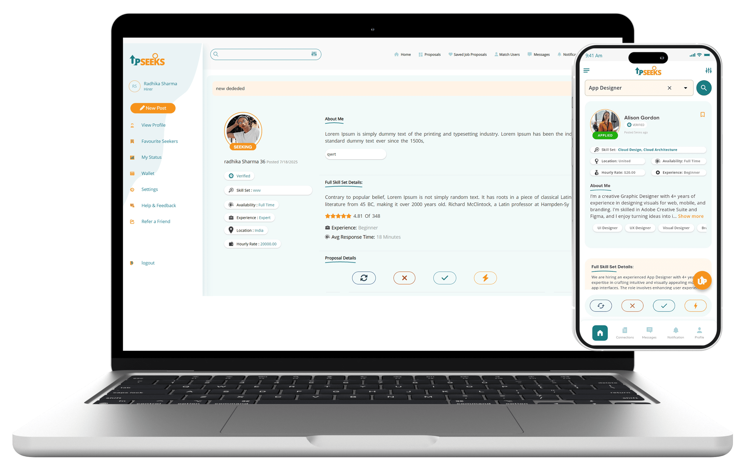 Once users have created their profile, they may begin seeking/providing work. Upseeks utilizes its powerful algorithm to connect the perfect candidate with the advertised job role. If the connection between the job seeker and provider is mutual, a discussion regarding the opportunity begins.