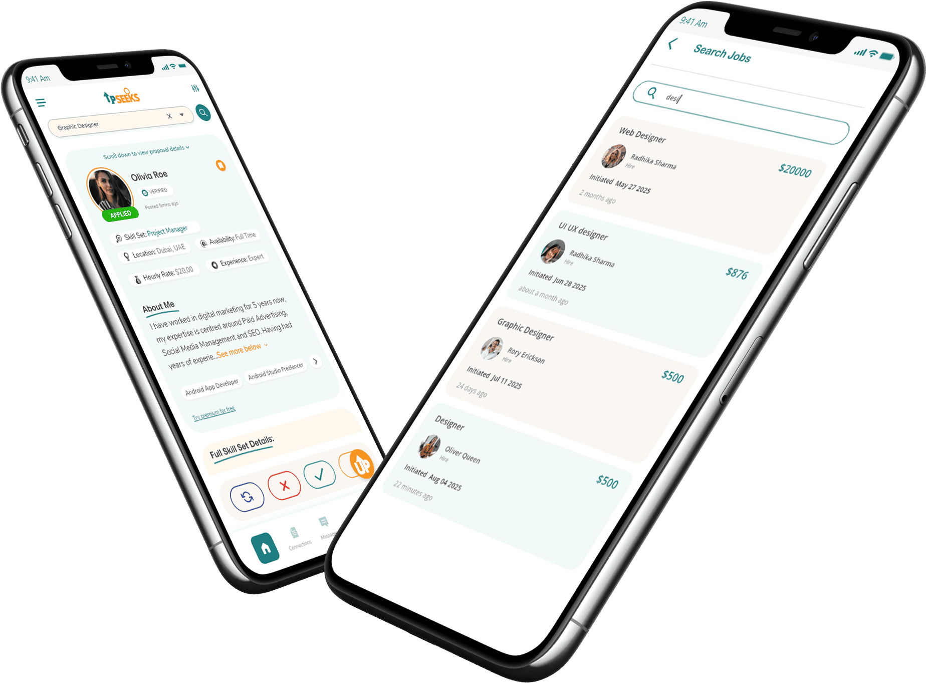 Once users have created their profile, they may begin seeking/providing work. Upseeks utilizes its powerful algorithm to connect the perfect candidate with the advertised job role. If the connection between the job seeker and provider is mutual, a discussion regarding the opportunity begins.