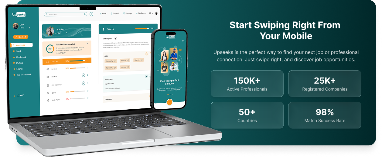 Upseeks is a platform that connects job seekers with suitable job opportunities and allows recruiters to find their ideal candidates for their projects.